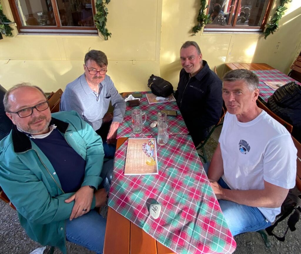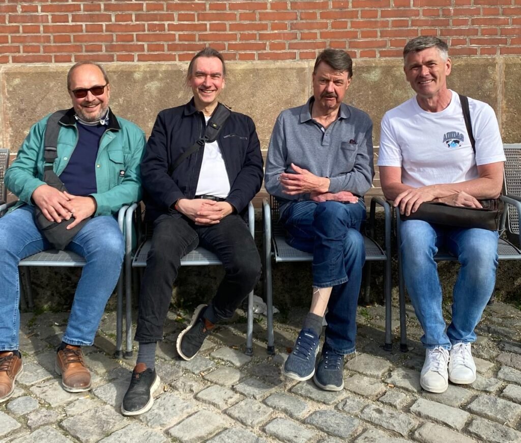 „Dult ist Kult“ – Vier mAks-Männer sitzen vor der Mariahilfkirche. ⛪ ☀️🧘